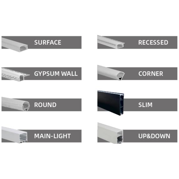 Surfaced-Recessed high-quality anodized/Spray Caoting LED Stair/wall/Corner Aluminium Profile.The profile is performing as the heat dispation and appears as nice,We propose to our customers three different Body Color Option: Silver, White and Black which make it look professional and modern.